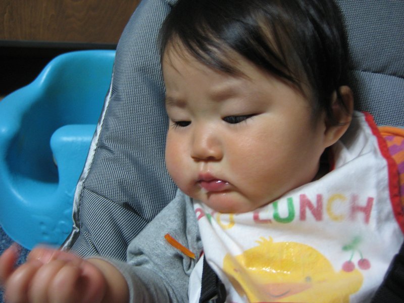 眠くて離乳食の途中で泣き顔になってしまいましたが・・・